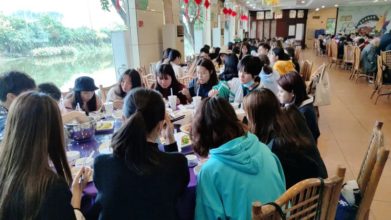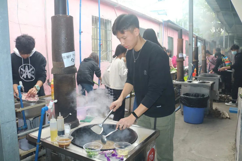 欢快的小组游戏暂时告一段落,晌午时分,大家兵分两路。野炊小分队的成员们纷纷化身小厨神,使出十八般武艺煮出一道道佳肴。耳边是砧板上铿铿的切肉声,是菜进入油锅的嗞啦声,以及大家的欢笑声。那一道道热腾腾的菜肴,是大家劳动的见证,是团结的凝聚。与此同时,餐厅里的小伙伴也在用餐,享受着属于他们的在餐桌上的美好时光。