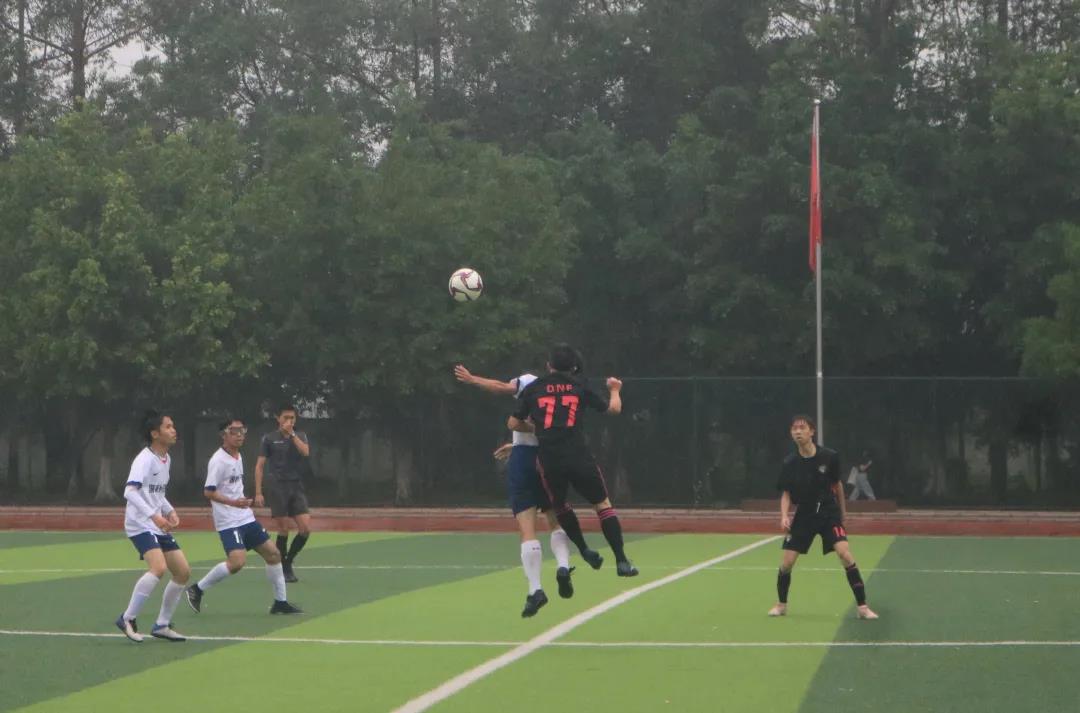 4月16日,国商外语联队与电子信息工程学院队足球赛在操场如约举行。雨淅淅沥沥地下,夹杂着丝丝冷风,但双方热情丝毫不减。比赛开始,双方彼此加油鼓劲后,展开了激烈的角逐。