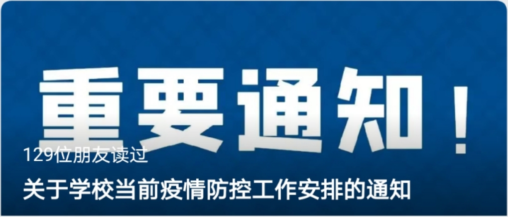 当前疫情态势瞬息万变,学校下达了新的紧急通知与最新的疫情防控工作要求:https://mp.weixin.qq.com/s/raTc3Dsq1hPfn0Dir_3Jig