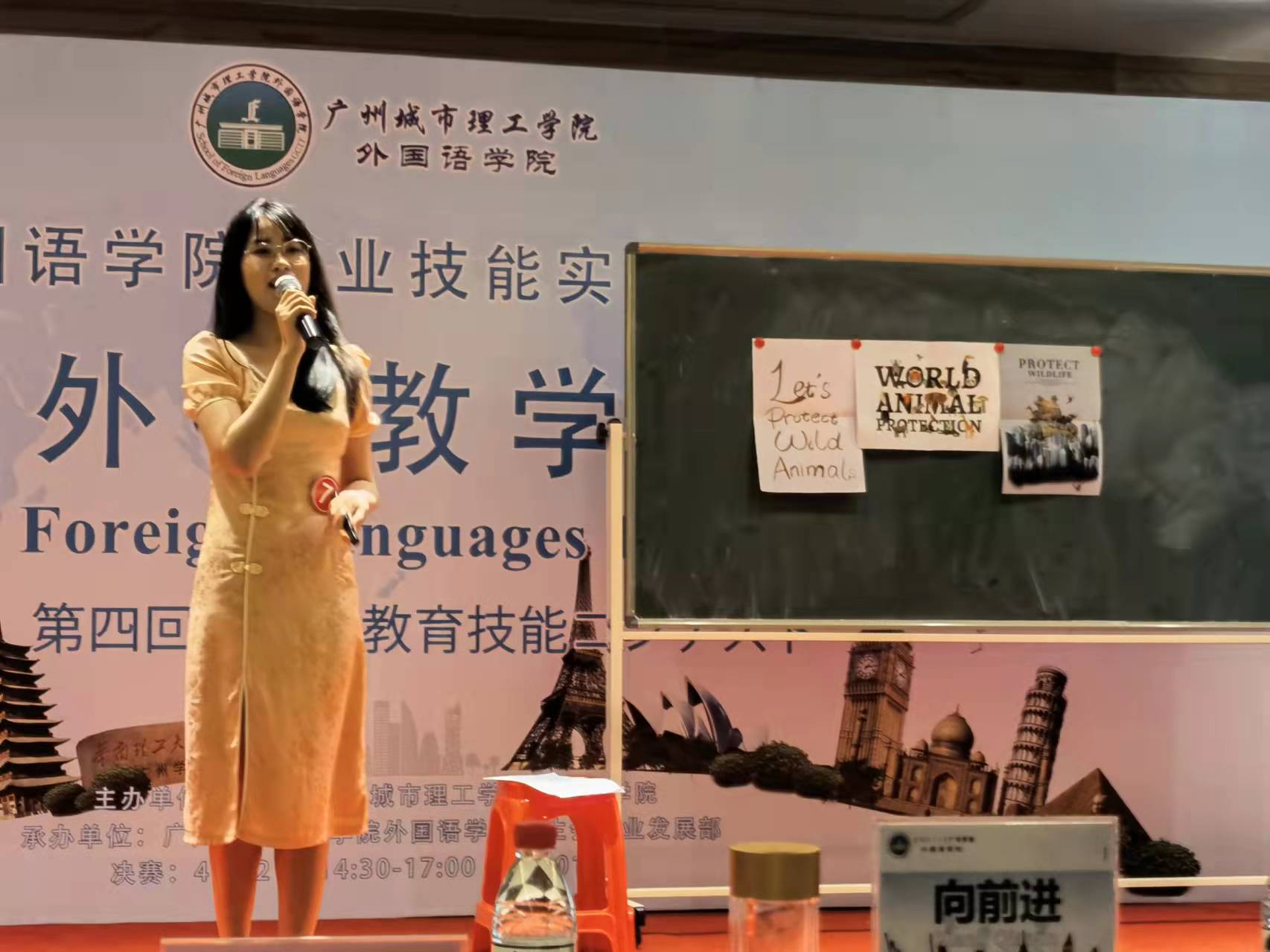 参赛学生在外语教学技能大赛上进行课堂教学展示