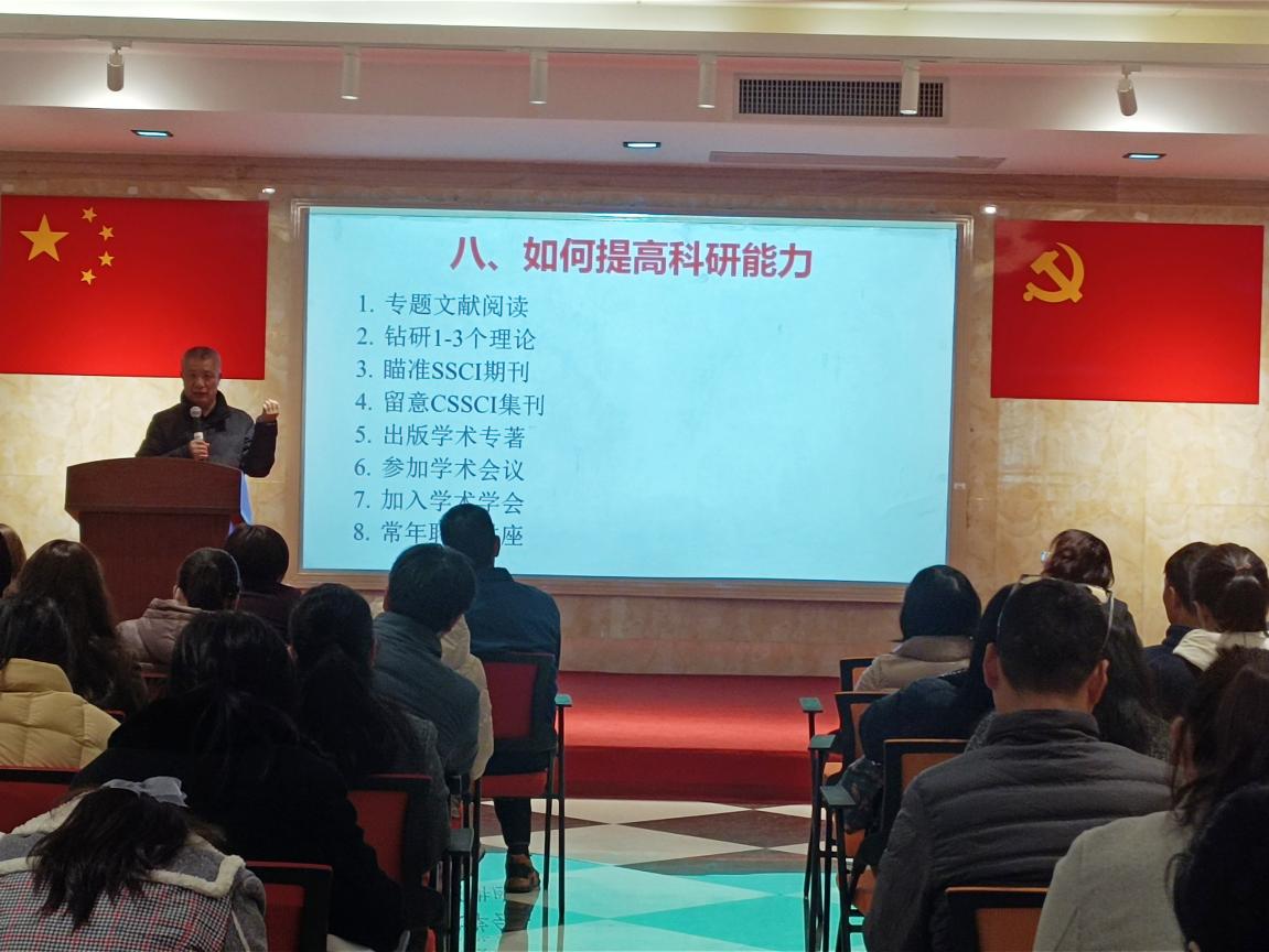 会议伊始,学院全体教师齐聚一堂,对新入职的三名新教师表示了热烈的欢迎。接着,钟书能院长对新学期工作的七个要点进行了布署,提出了明确要求。一是牢记常规教学工作,要求教师应当及时更新教学课件,将课程思政融入教学大纲,立足家国情怀,拓展世界视野。使用优质教学教材,不断进行教学改革,提升教育教学质量。二是高度重视就业与招生,必须重视招生宣传工作,鼓励学生就业多样化,集全院之力将招生与就业作为学院发展的生命线。三是扎实推进学生考研工作,全面确保考研指导服务,以答疑解惑、引导规划、协助联系为重心,多措并举为考研学子提供各类精准指导与服务工作,助力学子实现考研梦想。四是就学院专业四八级以及CET考试提出建议,强调全体教师要为学生提供专题指导,保证考试通过率“稳中求进”。五是加强师资队伍建设,鼓励支持年轻教师提高学位,研修访学。六是不断鼓励学生参加各类技能竞赛,指出应当从稳步推进、提高目标、开拓创新、加大辅导四个方面助力学生能力培养。七是提出提高科研能力的八个努力方向:专题文献阅读、钻研1-3个理论、瞄准SSCI期刊、留意CSSCI集刊、出版学术专著、参加学术会议、加入学术学会和常年聆听讲座。