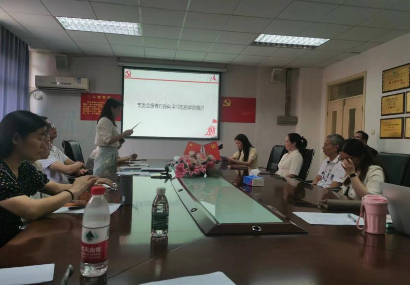 支部组织委员张晓玲同志报告了发展对象孙向宇同志的政治审查情况,该同志政治历史清白,家庭成员及主要社会关系政治历史清楚,无重大历史问题,并表明支委会同意意见。