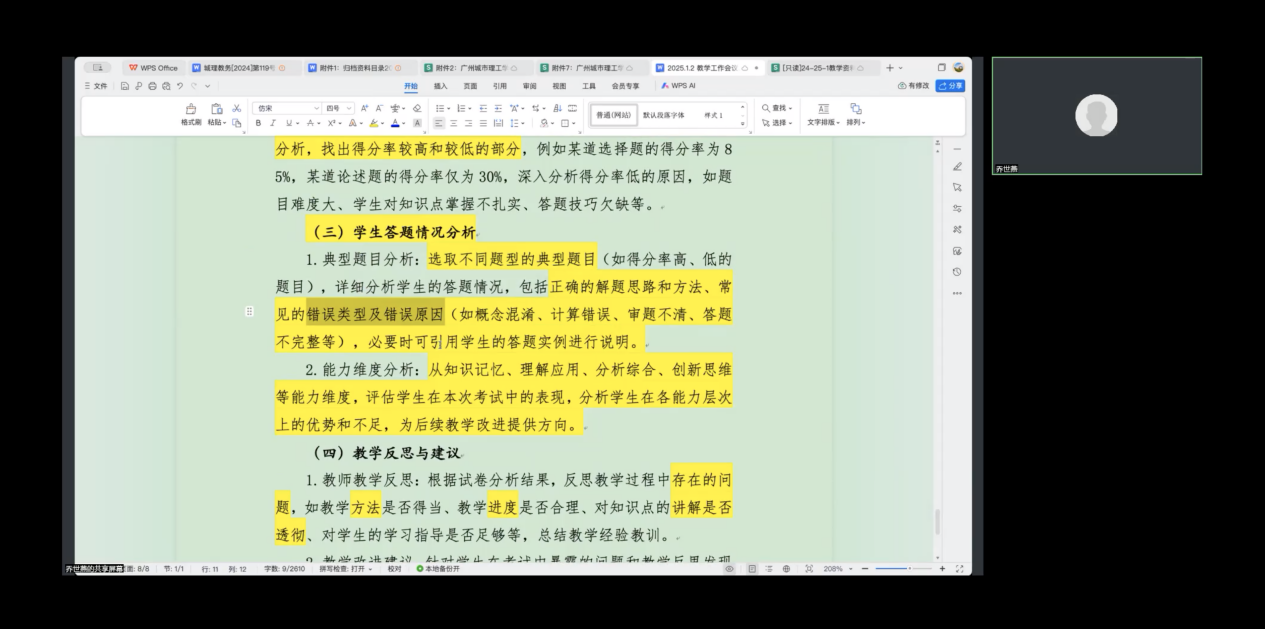 会议还对考试分析表的撰写进行了专业培训,强调了试卷分析的重要性。分析内容涵盖试卷整体情况、成绩统计与分析、学生答题情况分析以及教学反思与建议四个方面。会议指出,在撰写试卷分析时,应综合考虑试卷结构、知识点覆盖、难度水平,并从能力维度和学生表现出发,深入分析学生得分及失分情况,以准确把握学生对课程知识点的掌握程度,为教学方法的改进提供科学依据。