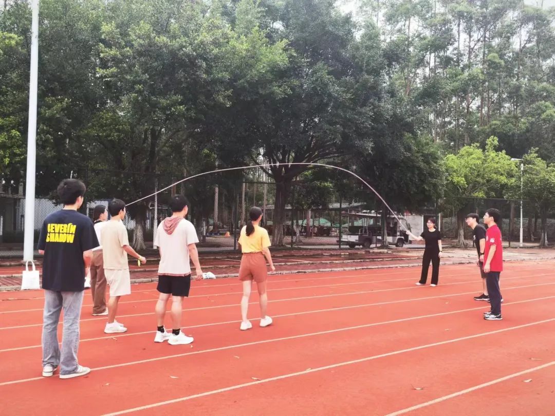同学们轻盈地跳跃着,绳子在空中划出一道道优美的弧线。他们的动作协调而优美,仿佛是在跳一支优美的舞蹈。