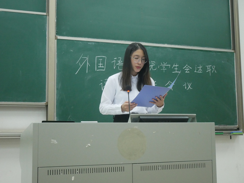 大会的第三项议程,由辜雅子老师进行发言。大家见证了学生会全体人员一年的辛勤付出与显著成绩,包括现场班级代表,其努力和成绩值得肯定赞赏,但成长进步道路无尽头,希望学生会成员们能够发扬团队精神、保持开放心态、创新工作方法、提升服务意识和质量。大会的第四项议程,述职评议小组成员开始对各参与述职同学进行评议并打分。
