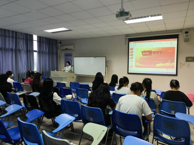 豆芹兰老师为青马班学员讲授第一课——《学习贯彻“两会”精神,凝聚奋进前行力量》,主要从2024年两会会议内容要点、会议精神、《政府工作报告》三个部分进行讲解。和学员们一起回顾了2023年的发展历程并展望2024年发展前景,并详细解读政府工作报告,引导学员们深入理解两会的核心精神和重要意义。学员们聚精会神,认真聆听,积极互动,展现出新时代青年的热情和担当。