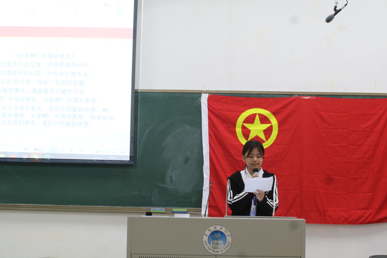 大会第六项:新发展团员代表发言。本次新发展团员代表是来自2022级英语4班的李浣淇同学,她说道,共青团是中国青年的先进组织,是中国共产党的有力助手和后备军,是全国青年的领导核心。她代表新团员给了大家一个承诺:“我们将树立崇高的理想信念,奋发进取,严格要求自己,履行好一名团员的权利和义务。”本次入团仪式到此结束,我们相信新发展团员将会以高昂的姿态团结在团旗下,扬起理想的风帆,焕发青春的激情,向着新的目标乘风破浪勇往直前,开启更壮丽的航程。