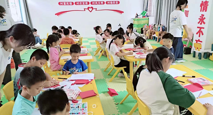 支教一路,终会繁花盛开。共建“幸福九潭”实践团在支教课程中深刻体会到教育的力量和意义,也在与孩子们相处的过程中收获了无尽的快乐和成长。九潭村小朋友们都积极参与我们在暑期三下乡开设的美育课程,在轻松愉悦的课堂中,既能通过别样的方式收获丰富的课外知识,也能充实暑期生活。