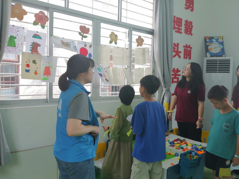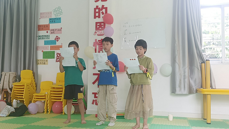 本网讯(记者 豆芹兰、温喜娇、李浣淇)晨梦点燃追求的希望,晨风吹响快乐的铃铛,晨曦绽放希望的芬芳。3月至6月中旬,2024年春季学期九潭村美育课程支教活动已圆满结束。2024年6月22日上午,我们特意邀请了小朋友和志愿者们前往小站家参加本学期课程总结分享会。当天上午9点,温喜娇、李浣淇两位活动主持人欢迎各位小朋友、志愿者和社工的到来并介绍了举办本次总结分享会的目的、流程和游戏规则等。首先,我们进行三个小游戏来活跃现场氛围,加深小朋友们和志愿者们的感情。