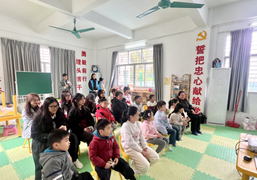 本网讯(记者 豆芹兰、温喜娇)12月15日上午,我们再九潭村“小站家”进行了本学期的课程总结分享会,莫菲菲、李嘉盈、何洁怡三位主持人热情洋溢地欢迎每一位小朋友及其家长、社工和志愿者,并向大家介绍此次总结分享会的流程与内容,正式拉开了这场总结分享会的序幕。