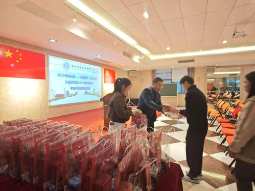 随后,活动进入了慰问品发放环节。学院为每位考研学生都准备了精美的慰问品,象征着学院对考研学子们的鼓励与祝福,更传递了对他们的精神鼓励。李伟亲自为考研学生发放慰问品,并与他们亲切交流,鼓励他们保持积极心态。