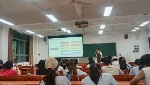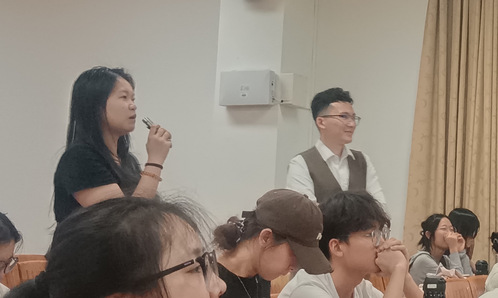 为增进同学们的互动交流、激发思维碰撞,黄一海随机邀请两位同学进行分享。第一位同学大方起身,模拟面试教师岗位。她表示自己一直热爱教育事业,希望凭借知识和耐心助力学生成长,成为一名优秀的英语教师。第二位同学分享了留学期间在日本大阪的兼职经历,尽管起初被老板拒绝,但凭借自身努力赢得机会,创造价值的同时也实现了个人就业经验的提升。
