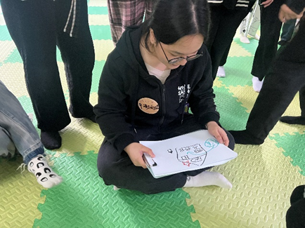 刘社工组织了一场以共创形式的分享感受活动。她邀请志愿者们用不同颜色的便利贴写下这四个月的美育课程支教活动经历中令自己印象深刻的人或事情,自己在支教过程中有什么变化或经验以及对小站家目前的运行有什么想法或建议。志愿者们分组讨论,走心交流,认真地写下各自心中真实的想法和大家分享。大家分享自己在几期支教经历中给自己带来的变化和经验,在支教过程中变得越来越自信、越来越有教学的经验以及在自己在教学遇到的困难以及解决的方法与反思;谈到了令人印象深刻的小朋友及他们之间发生的有趣的事情;志愿者们也为“小站家”开放空间提出了自己的建议,希望能够在空间内墙角安上防护道具,以保障在孩子在课余玩耍过程中的安全等等。刘社工也对应做出相应的回答以及目前已经在解决及今后将会进一步完善空间的运行。这次团建活动给大家带来了宝贵的收获,让志愿者更加深刻认识到团队协作的重要性,让他们在今后的工作、学习还是生活中继续保持这种团队协作的精神。