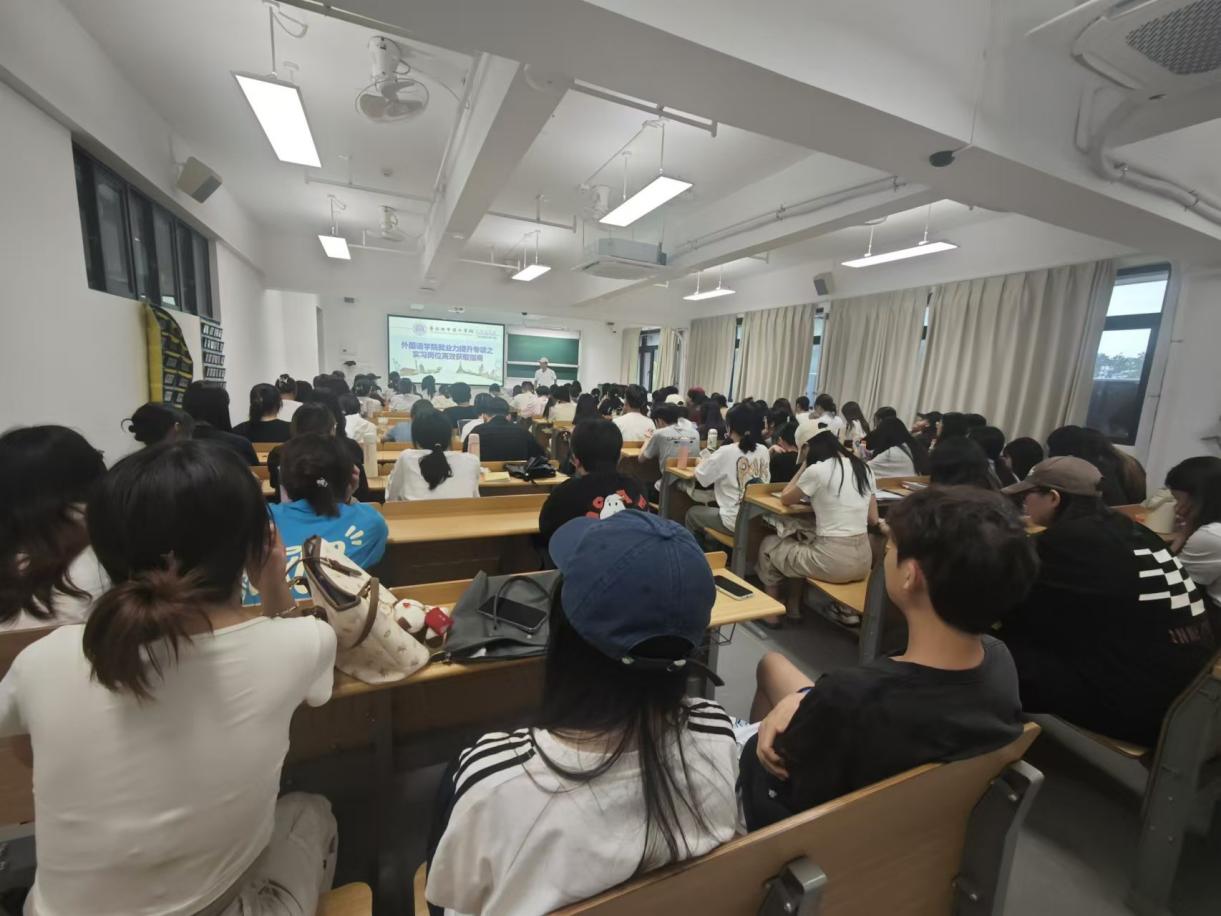 讲座中,谭瑞庭深入剖析了实习对大学生成长的多维意义,指出实习是语言专业学生将理论转化为实践的关键场景——不仅能在商务谈判、文案撰写等真实工作场景中强化英语应用能力,还能通过跨文化协作提升沟通素养。对于职业发展而言,实习既是提前熟悉职场规则、培养团队协作与问题解决能力的“预演场”,更是通过优质经历背书简历、积累行业人脉的“跳板”。学生可通过不同岗位实践探索职业兴趣,避免毕业后盲目择业,实现“在实习中认识自己,在体验中明确方向”。