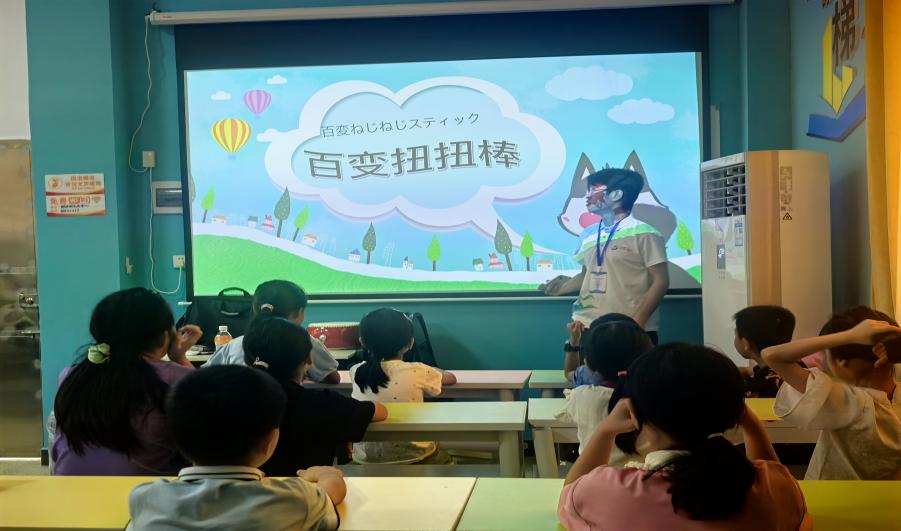 团队于上午到达塱头村文化中心二楼开展活动,志愿者们精心准备的扭扭棒样品吸引着小朋友们的目光。这些色彩鲜艳、造型各异的手工作品,像是一扇通往奇妙世界的大门,瞬间点燃了孩子们的好奇心。课程中不仅融入了非遗文化,还有外语知识。志愿者们耐心地向小朋友们讲解,孩子们听得津津有味,眼中闪烁着对新知识的渴望。