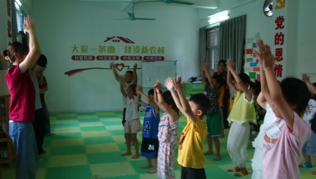 舞蹈课志愿者王婷、应哲昊和小朋友们一起学习《DADDY》舞蹈,主要是培养节奏感和表现力;两位老师通过舞蹈动作分解,耐心指导小朋友们,并根据音乐节奏进行多次练习。小朋友们在欢乐的练习和互动中展现出,并通过小组的合作和自由表演收获了自信与团队温暖。