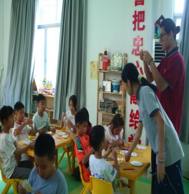 7月7日到9日,实践团成功开展了首轮五门美育课程教学活动。绘画与手工课志愿者陈舒苒、冯子晔带领小朋友们开展了趣味手工课,两位老师指导小朋友们用蛋糕盘、麻绳和黏土制作创意水母作品,孩子们通过裁剪、打孔和装饰等步骤,充分发挥想象力,完成了各具特色的水母手工。这节课孩子们在锻炼动手能力与创造力的同时,也充分感受艺术的乐趣。
