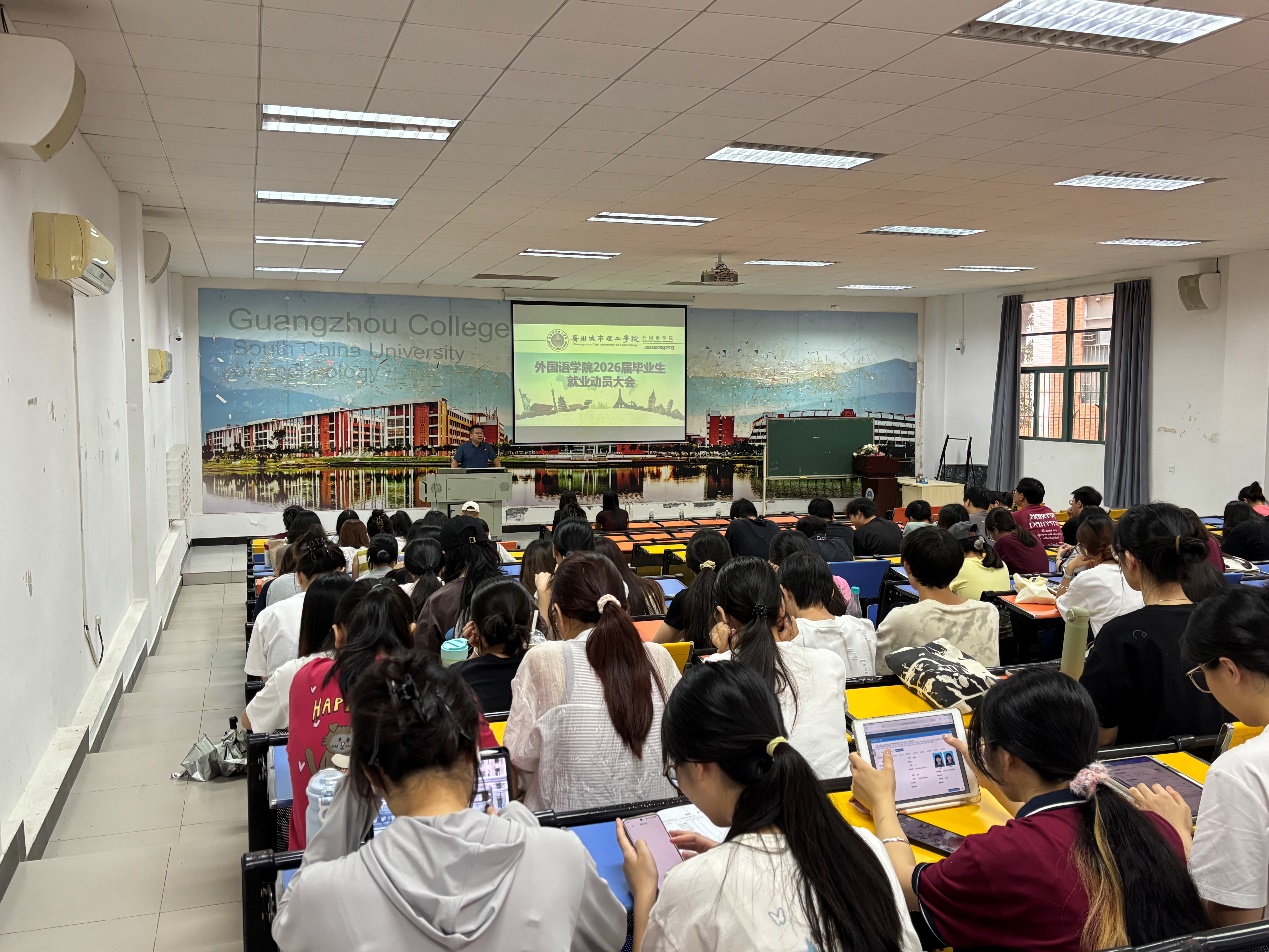 大会伊始,李伟作动员讲话。他结合当前就业市场对复合型人才的需求趋势,强调外语专业毕业生需打破“仅靠语言谋生”的单一认知,主动拓展“外语+专业技能”的能力组合,并鼓励同学们认真吸收企业与学院专家的分享内容,尽早规划职业方向,学院也将通过岗位推荐、求职培训等举措为大家保驾护航。